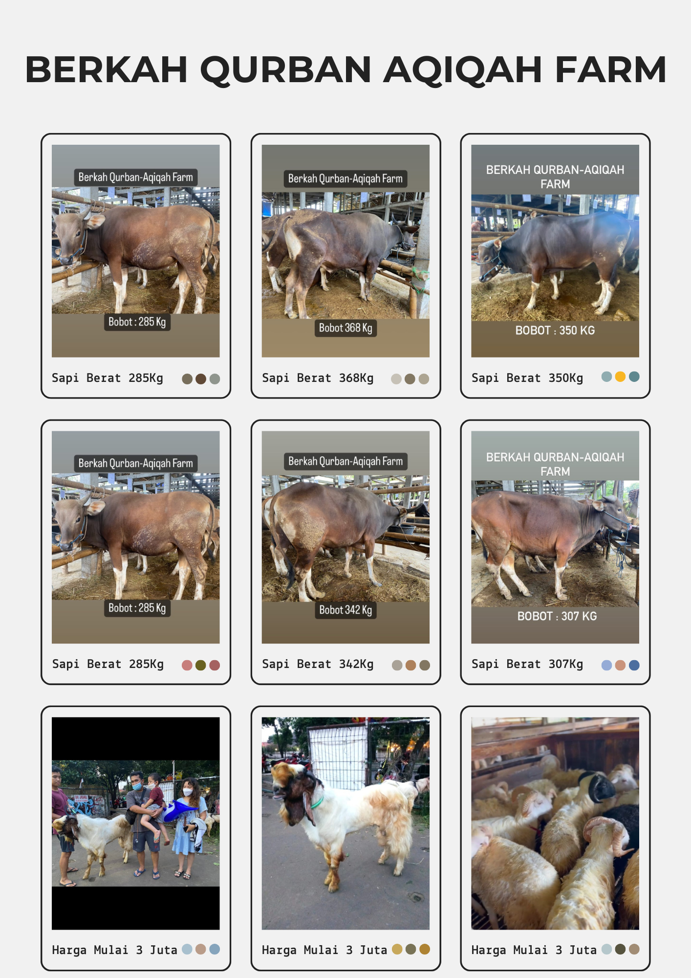 Kami menyediakan berbagai jenis hewan qurban seperti : Sapi, Kambing, Domba, dan terjamin kesehatannya agar sesuai dengan syariat islam